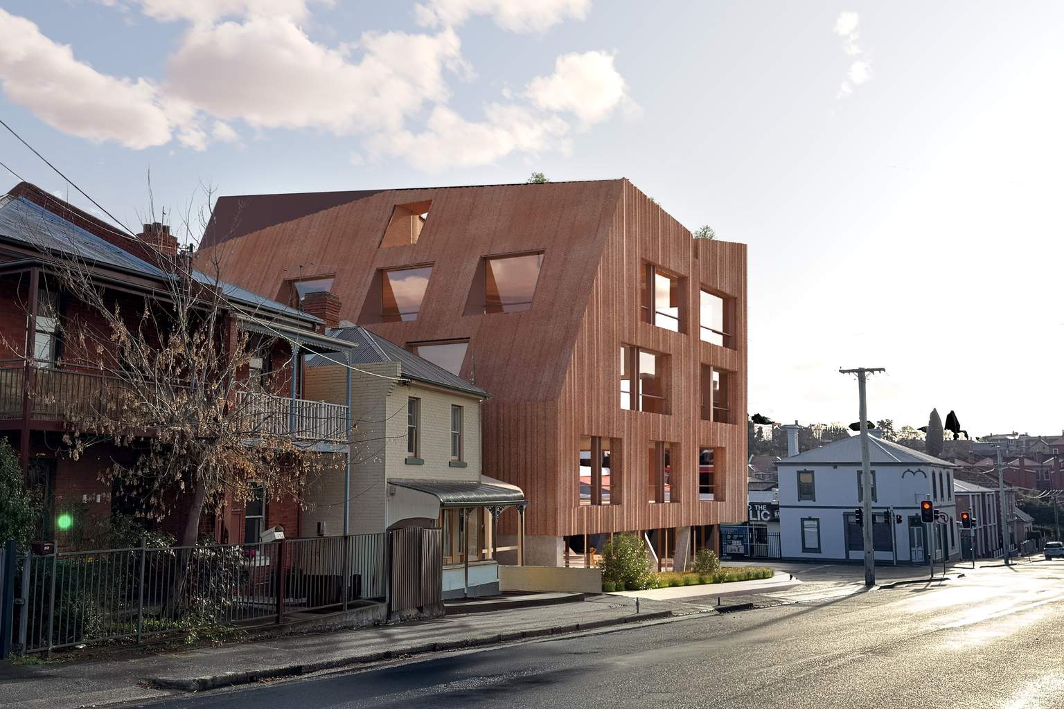 At its highest point, the building will reach 20 metres, but the design incorporates “a gradual increase in height at a slanted angle of approximately 27 degrees” to transition between Murray Street’s commercial character and the residential-scaled Patrick Street.
