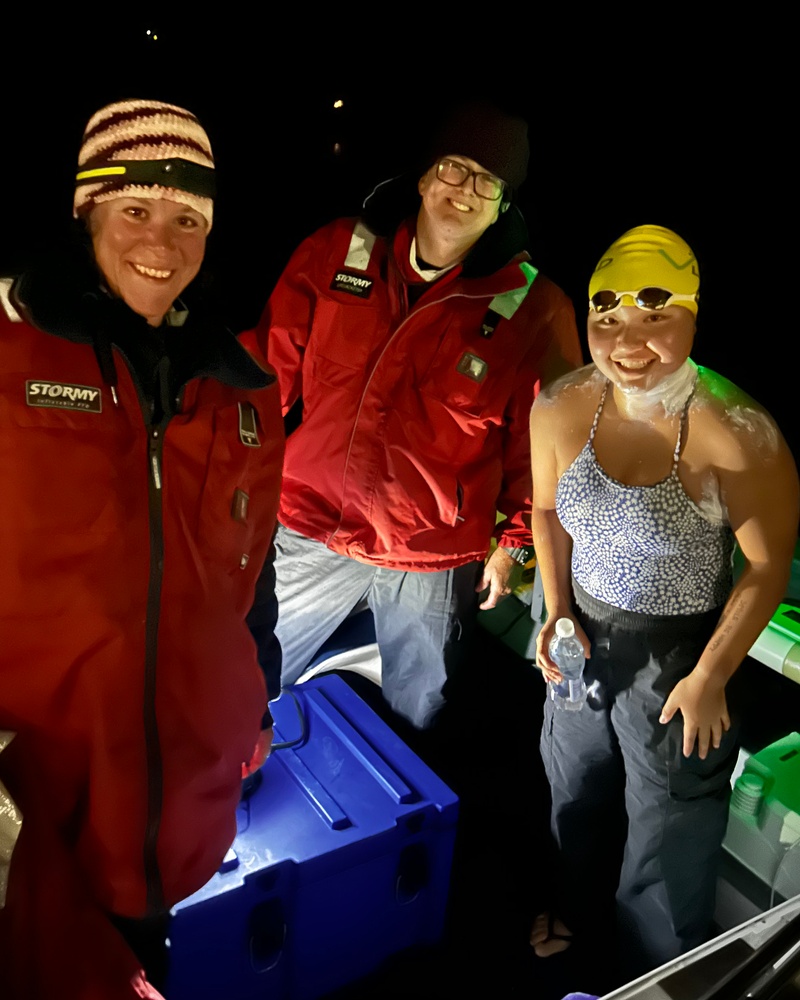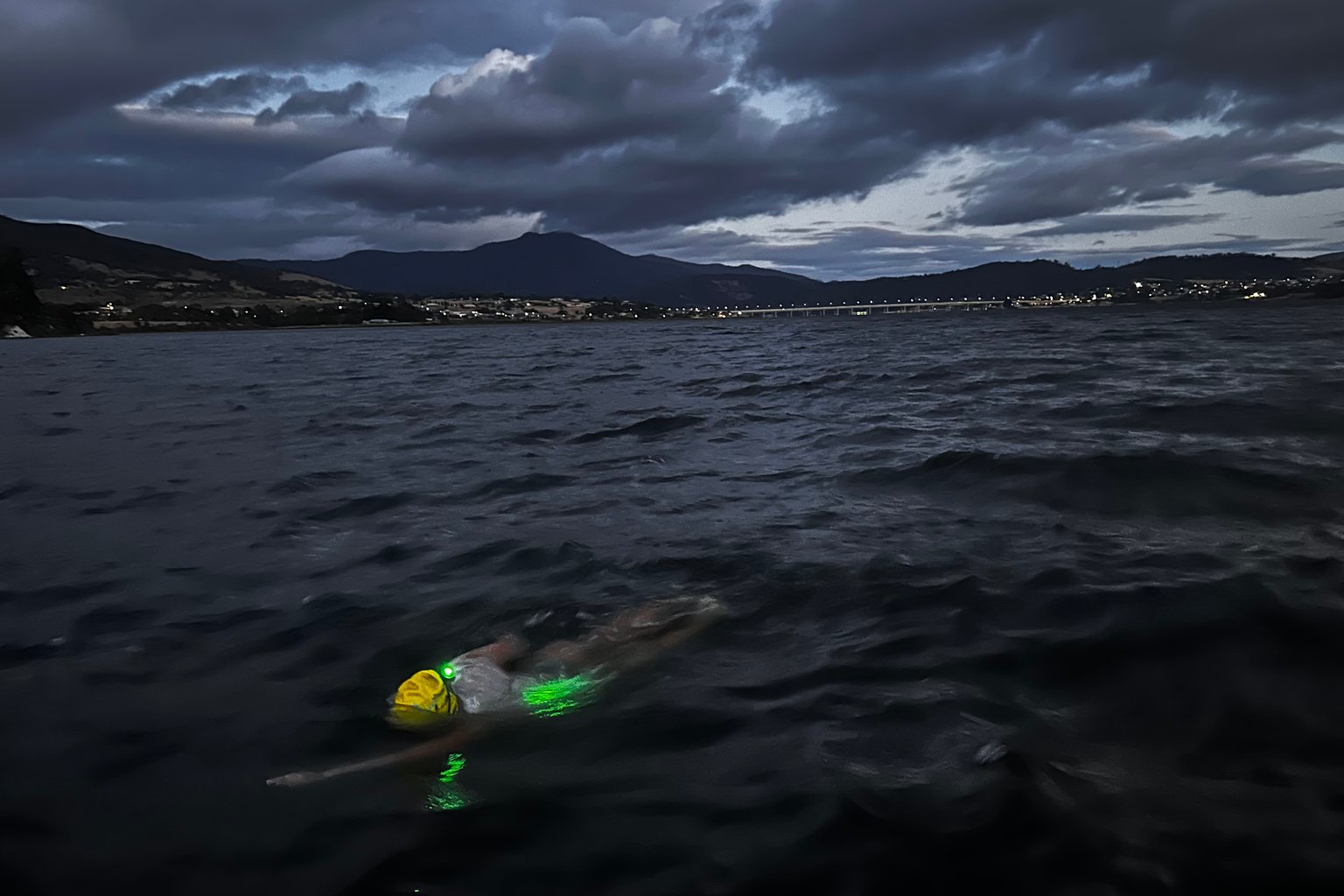 “I love how there’s no light at all when you start. We start at midnight or pretty early in the morning, so it’s just you swimming under the stars.”