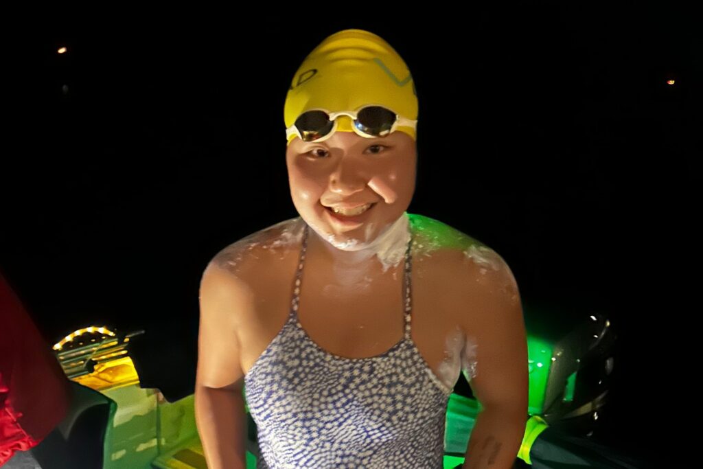 “I love how there’s no light at all when you start. We start at midnight or pretty early in the morning, so it’s just you swimming under the stars.”