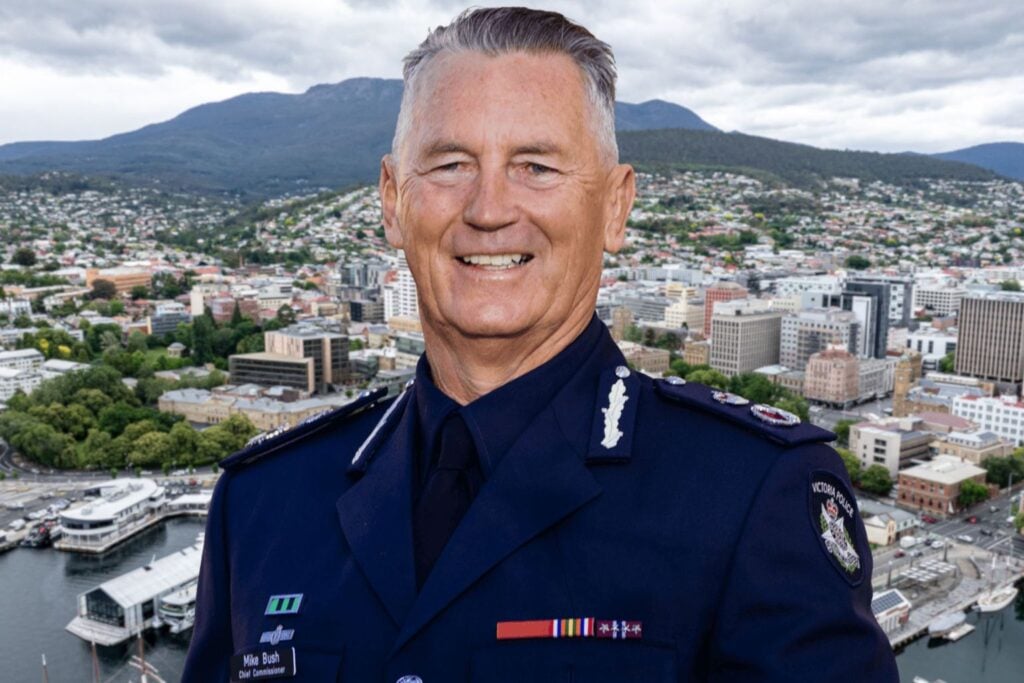 Chief Commissioner Mike Bush travelled to Hobart on Monday using the Victoria Police Air Wing to attend an annual conference of police commissioners from Australia and New Zealand.