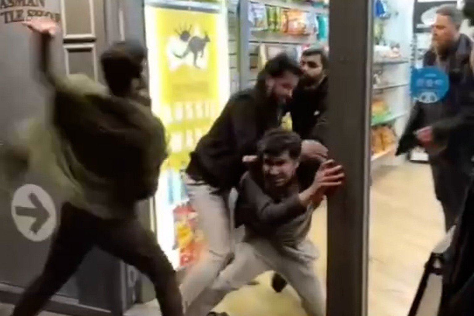 The altercation, involving punching and slapping, spilled into the Aussie Mart convenience store, where one driver was pressed against a glass window before being pushed outside.