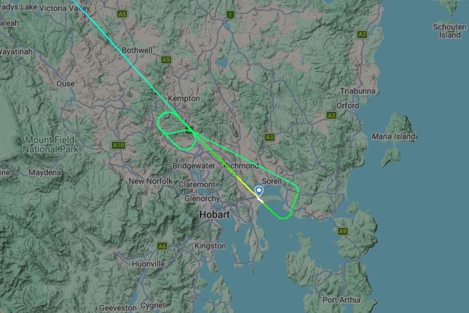 Flight VA1602 was observed circling in the air over greater Hobart after crew issued a “pan pan” call – an urgent situation that falls short of an immediate danger but requires priority attention from air traffic control.