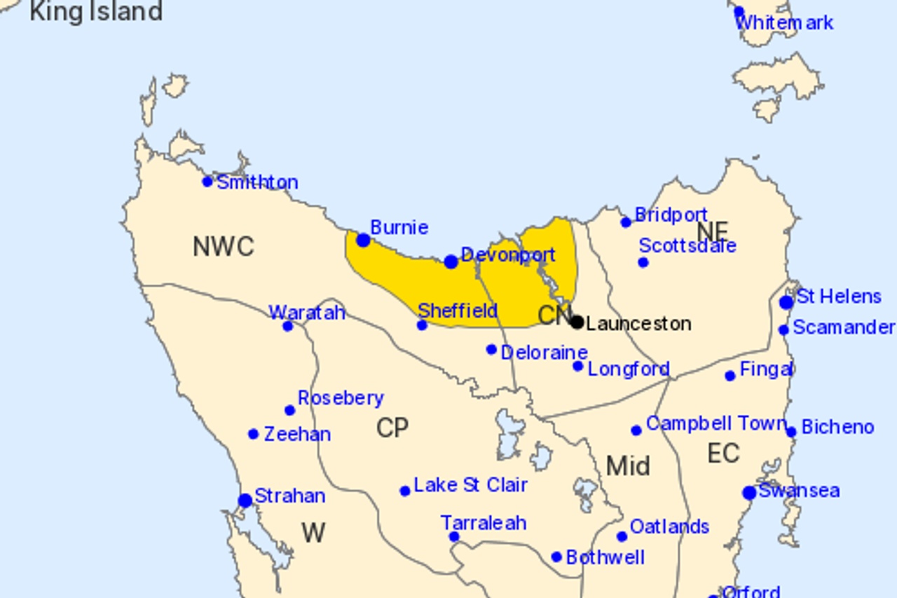 Damaging winds remain the main concern, with locations including Devonport, Burnie, George Town and Ulverstone in the firing line.