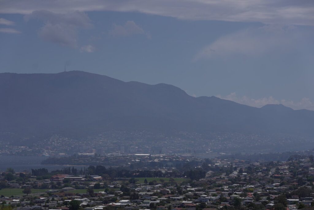 Residents in lower suburbs towards Berriedale may experience reduced air quality as smoke tracks downhill.