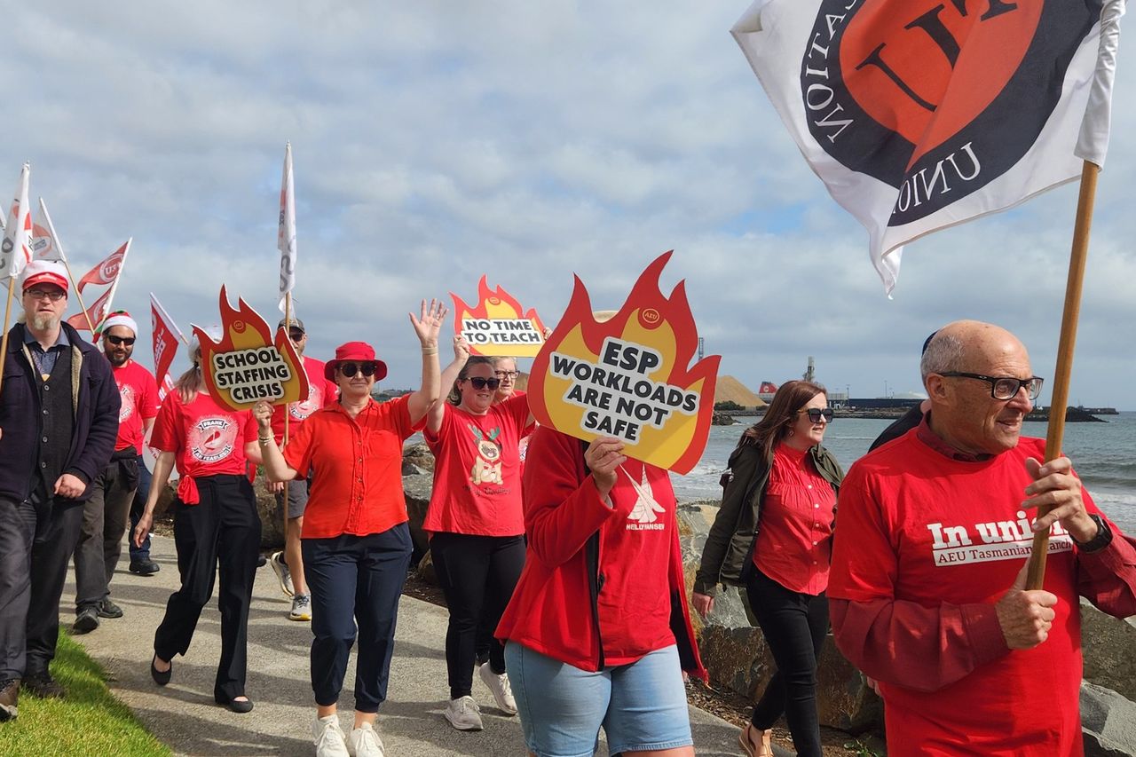 The Australian Education Union (AEU) has announced rolling 24-hour stoppages starting Tuesday, March 24, on the north-west coast, followed by the north on Wednesday and the south on Thursday.