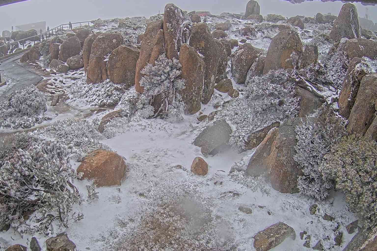 Eager visitors flocked to Mt Wellington first thing this morning, with many sharing images of the snow-covered summit online.