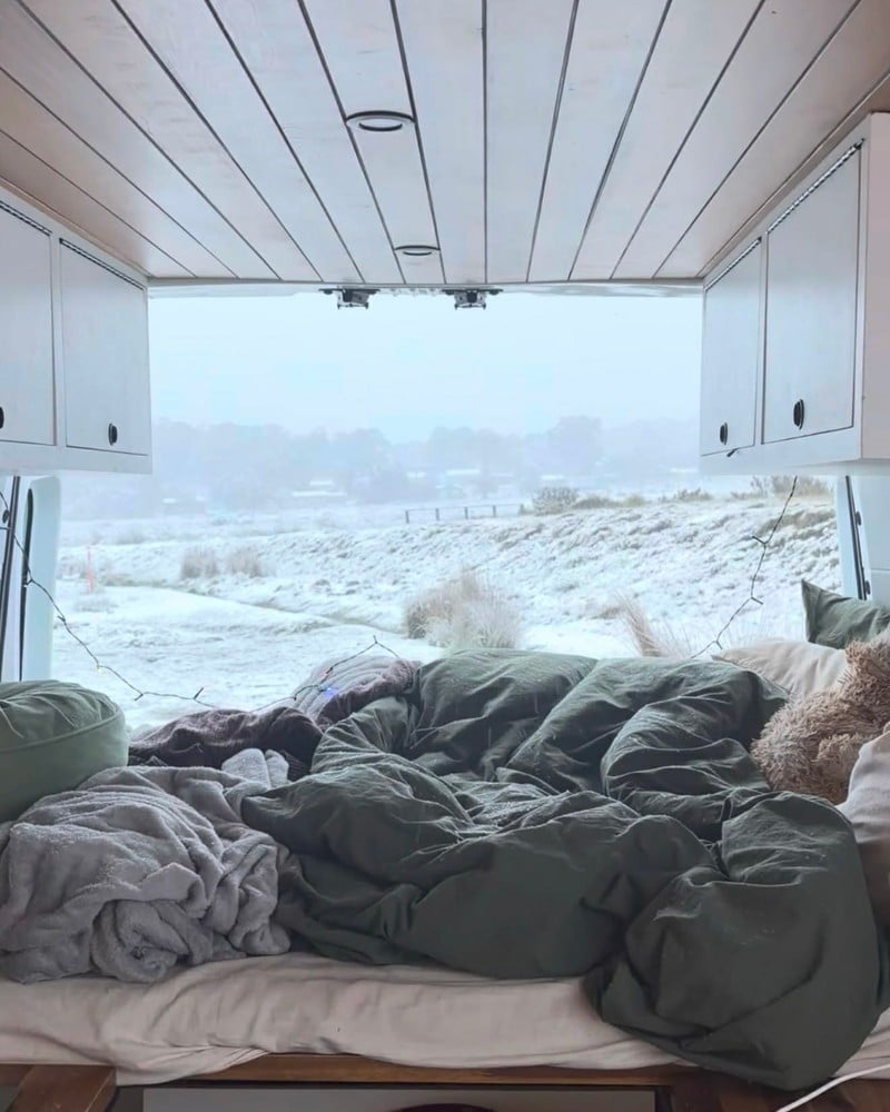 Meanwhile Abby Duce in the Central Highlands shared images of her white Christmas camping in a van by the lake, saying it was an “absolute blessing”.