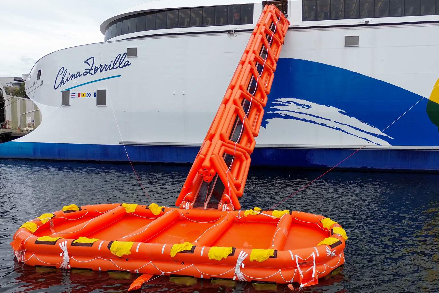 Once fully equipped, the vessel will carry six evacuation systems and 13 linked liferafts with capacity for 2,432 passengers.